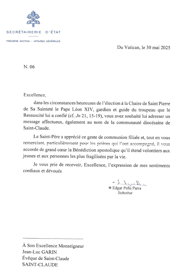 Par ce courrier, je veux vous assurer la prière de l’ensemble des diocésains de Saint-Claude.