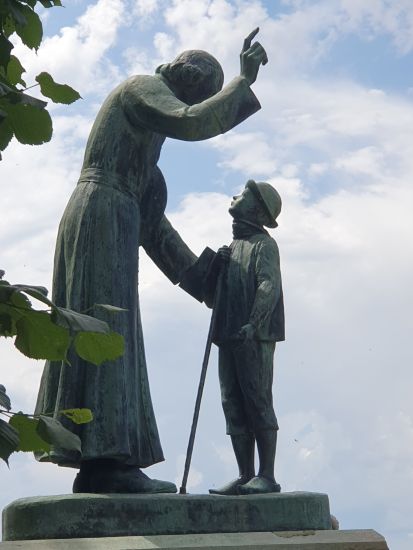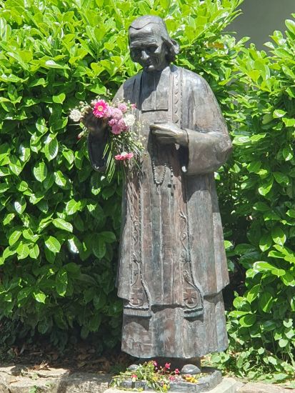 Arrivés à Ars, sous une journée chaude et ensoleillée, nous avons pu assister à la messe célébrée par le cardinal Christophe Pierre, nonce apostolique aux Etats-Unis. L’après-midi, un programme « à la carte » a permis aux pèlerins soit de vivre une démarche jubilaire (avec le passage de la porte sainte), soit d’arpenter les rues du village, se plongeant littéralement dans le souvenir du saint Curé (de nombreux lieux du village sont encore marqués de l’empreinte du saint tel que son presbytère, l’église dans laquelle il officiait, son confessionnal, la maison de la providence…). Enfin, avant de rentrer dans le diocèse, nous sommes montés au monument de la rencontre : c’est en ce lieu que le Saint Curé a rencontré, en arrivant dans son nouveau ministère, le jeune Antoine Givre, berger local qui l’accompagnera tout au long de sa vie. Le Saint Curé avait conclu cette rencontre avec cette phrase : « Tu m’as indiqué le chemin d’Ars, je te montrerai le chemin du Ciel ». Ce jeune Antoine décédera 4 jours après le Saint Curé, le suivant sans doute sur le chemin du Ciel… ».