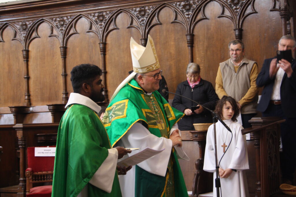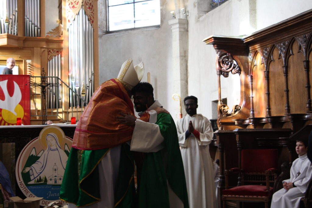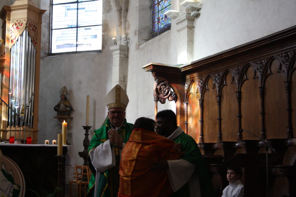À la fin de la célébration, le père Jegani Arockiasamy, curé, a remercié Mgr Jean-Luc GARIN pour sa confiance, ses encouragements et sa prière dans cette charge pastorale à Clairvaux. Il l’a honoré en lui offrant un châle indien, signe de gratitude et de communion. Il a également remercié le père Armand ATHIAS, prêtre en service à Clairvaux-les-Lacs.
