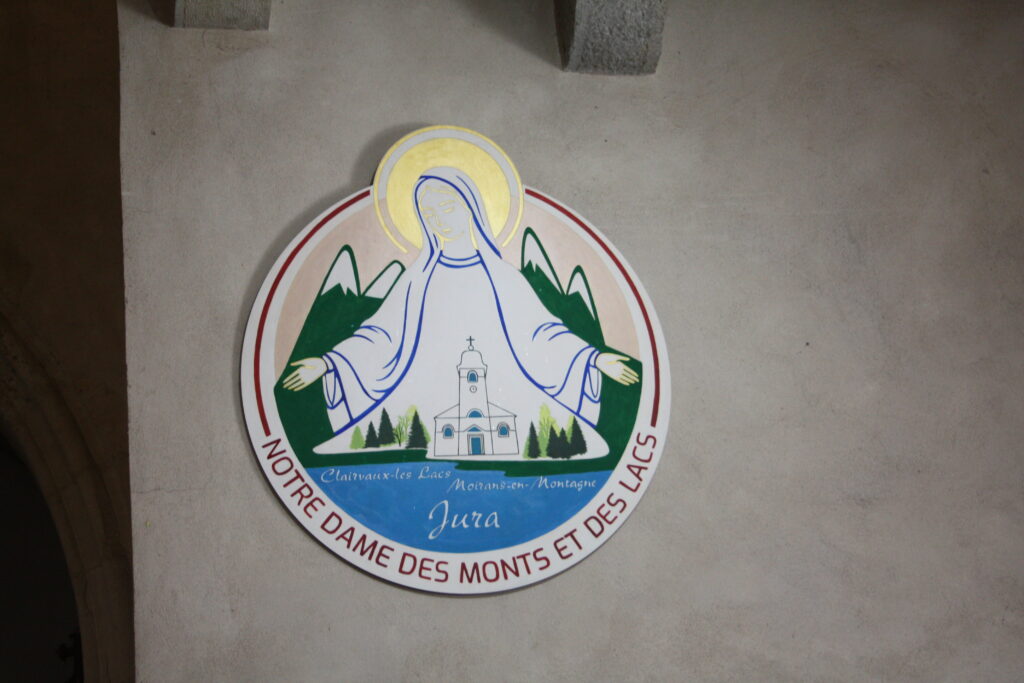 Le logo a été réalisé par Mme Carole, graphiste et catéchiste à Moirans. Il représente le visage de la Vierge Marie accueillant les montagnes, les sapins, les chênes et l’une des églises de notre paroisse, exprimant ainsi notre identité franc-comtoise. Ce logo a été gravé sur un tableau en bois à l’atelier de Boissellerie du Hérisson par M Michel NEGRELO, puis peint par Christine NEGRELO et Nathalie.