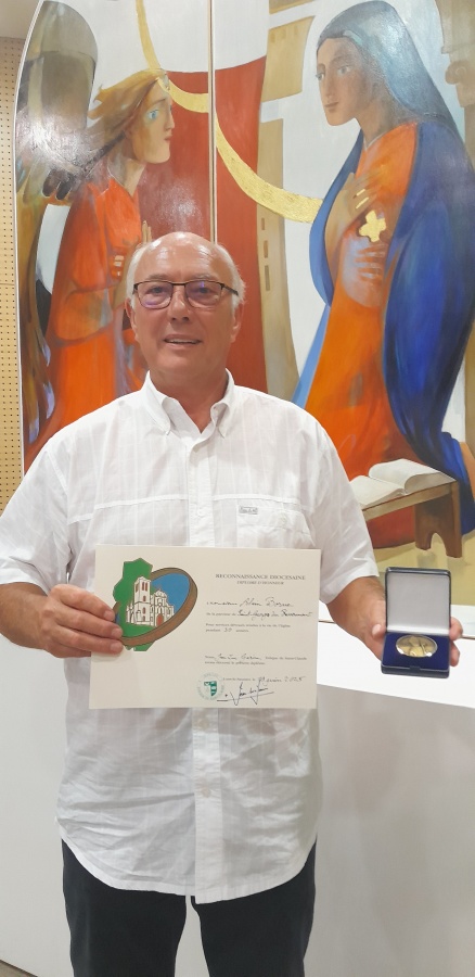 A cette occasion, monsieur Christophe Bas, secrétaire de l’Association Diocésaine de Saint-Claude, a souligné l’engagement dans la durée d’Alain Borne qui a commencé son mandat bénévole d’administrateur de l’Association Diocésaine lorsqu’il exerçait son métier d’assureur.
