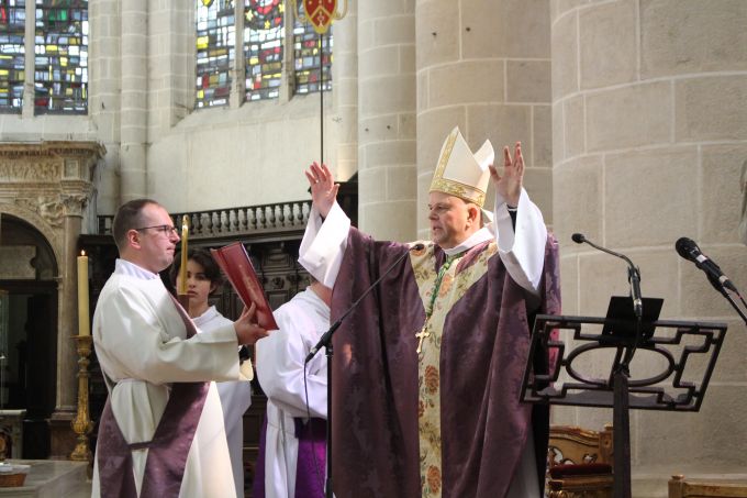 Enfin, juste avant de se voir offrir, sur scène, un drapeau jurassien qu’ils ont brandi avec reconnaissance devant l’assemblée, Thomas et Benjamin n’ont pas manqué de saluer chaleureusement le « père Jean-Luc », notre évêque. En effet, ils ont exprimé leur gratitude envers lui : « il y a vingt ans, à Lille, p.Jean-Luc a réservé une énorme salle et nous a fait confiance. Il a eu une énorme foi à l’époque, car Glorious n’était pas encore connu. C’est un peu par lui que Glorious a démarré ».
