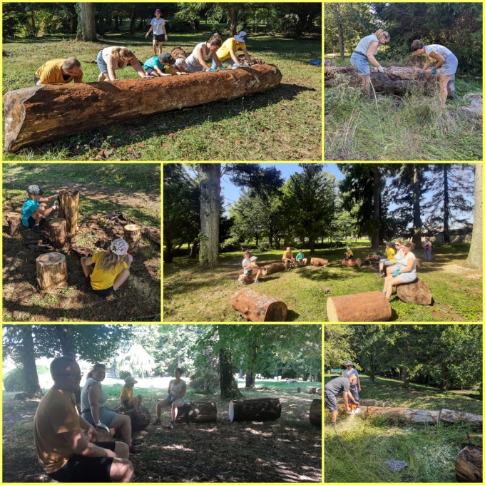 Cet été, une équipe de professeurs des écoles de l’école Saint-Louis Notre Dame de Poligny est venu avec conjoints et enfants pour une matinée d’aménagements en vue de la rentrée. Deux espaces avec des bancs ou des sièges taillés dans les troncs d’arbres ont été aménagés pour accueillir des classes lors de séances d’école en plein air ou des équipes de scouts pendant les weekends.