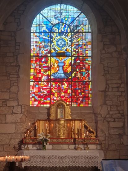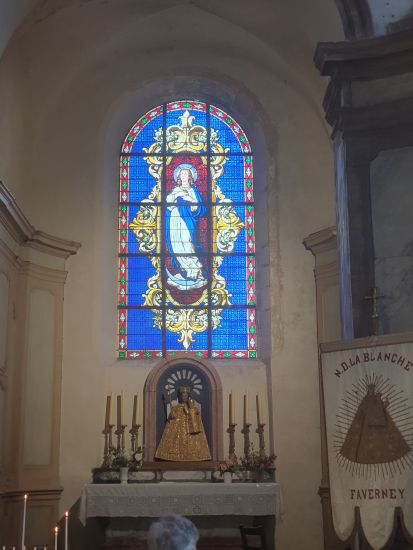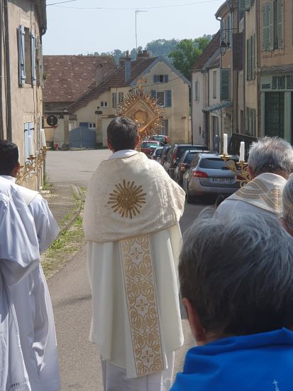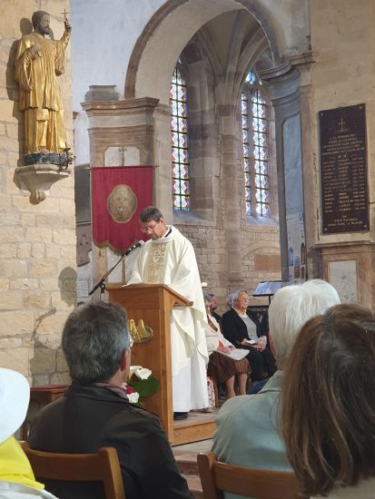 Journée extraordinaire et ensoleillée avec une trentaine de pèlerins et le diocèse de Besançon. Messe, adoration, enseignement et procession avec le Saint Sacrement.