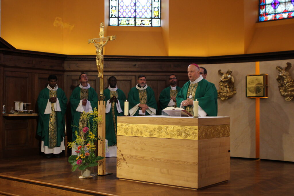 La journée de rentrée des prêtres et des missionnaires diocésains s’est déroulée le 4 septembre à la Maison du diocèse, en présence de Mgr Alexandre Joly, qui a participé aux deux sessions du synode sur la synodalité à Rome. L’objectif de son intervention : nous aider à mieux connaître le document final du synode sur la synodalité publié par le pape François en octobre 2024 et à le mettre en œuvre dans nos diocèses. Ce document intitulé « Pour une Eglise synodale : communion, participation et mission » invite à promouvoir la synodalité comme une nouvelle manière de vivre et d’agir pour notre Eglise. Dès les premiers mots adressés depuis la basilique Saint-Pierre, le pape Léon XIV a appelé à continuer cet élan synodal : « Nous voulons être une Église synodale, une Église qui marche, une Église qui cherche toujours la paix, qui cherche toujours la charité, qui cherche toujours à être proche surtout de ceux qui souffrent ».