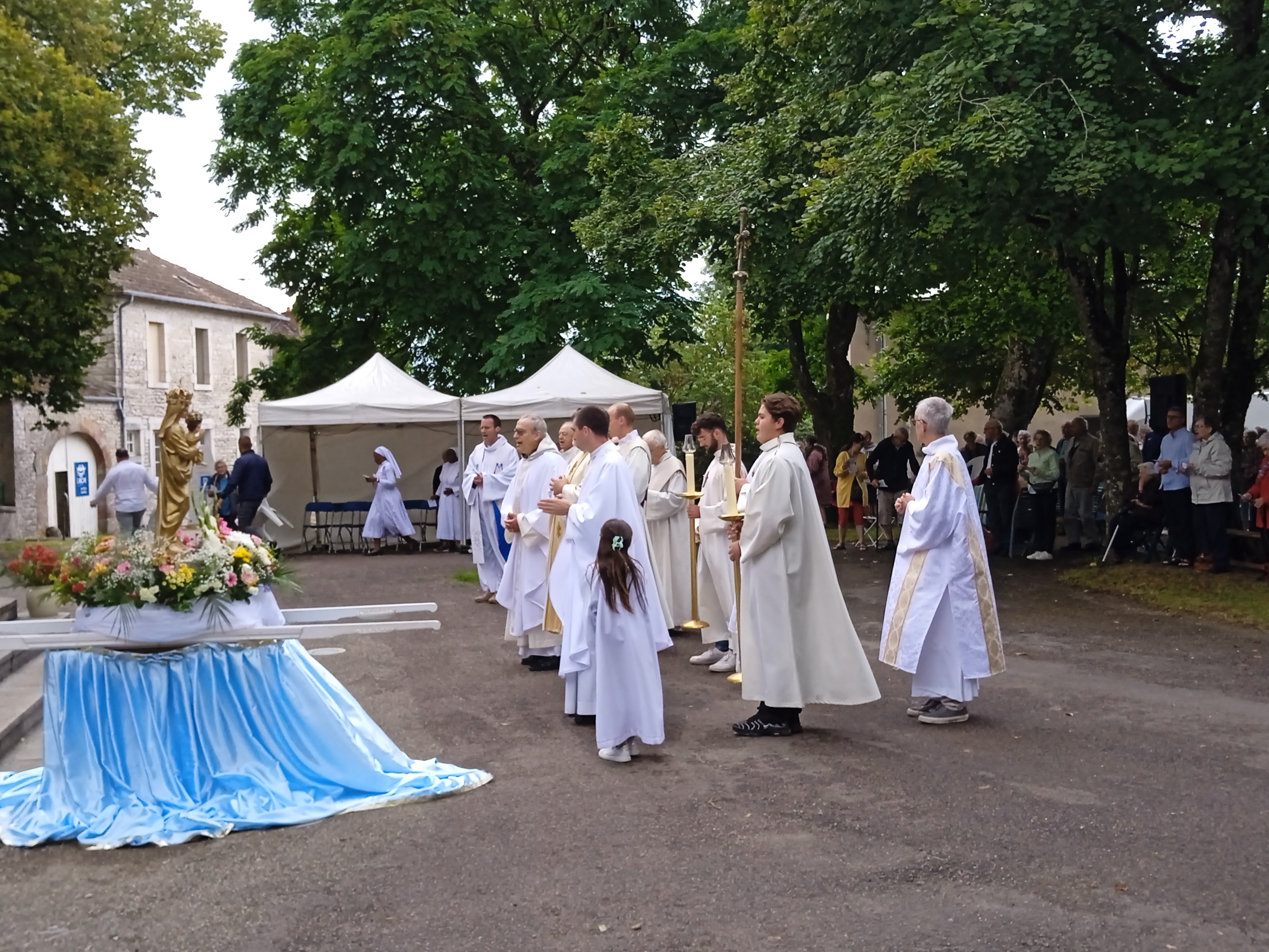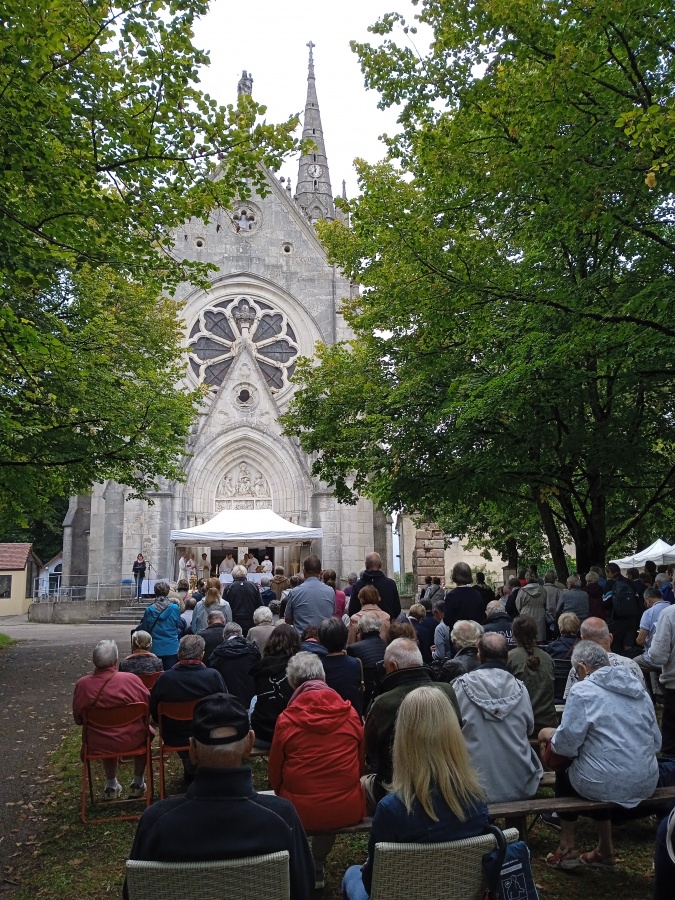 Comme chaque année, de nombreux diocésains et pèlerins venus des diocèses voisins se sont retrouvés le 2 août pour célébrer Notre-Dame de Mont-Roland, au jour anniversaire de la dédicace de l’église du sanctuaire et du couronnement de la statue. Mgr Garin étant à Rome pour le jubilé des jeunes, c’est le père Arnaud Brelot qui présidait cette année les célébrations. Après la messe du matin, l’après-midi a été ponctuée par un temps de louange, suivi d’un enseignement du père Brelot nous donnant la Vierge Marie comme modèle d’espérance, et de la traditionnelle procession à la suite de Notre-Dame de Mont-Roland.